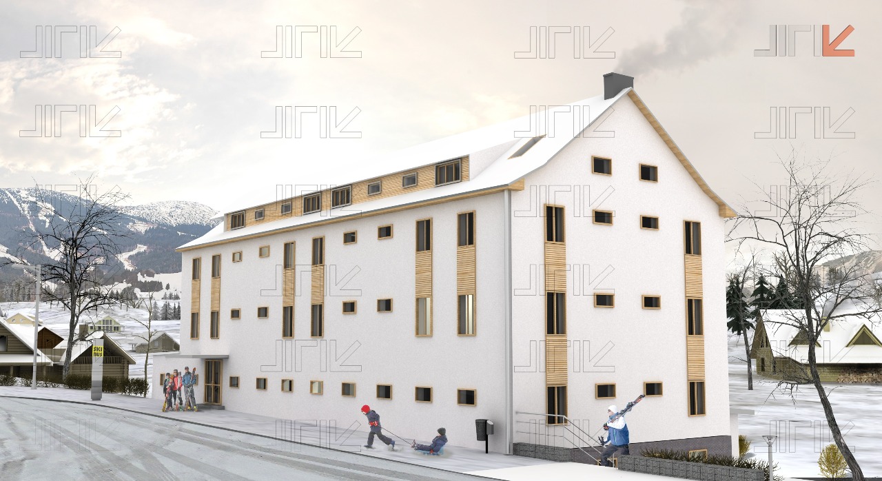 - změna využití z internátu na apartmány a studia hotelového typy s průměrným standardním